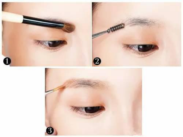 用眉粉填充空隙部分,再适当勾画以打造出流畅的眉形,最后用眉刷轻刷眉毛即可。
