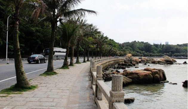 珠海的 " 情侣路 " 其实很长,车未入珠海市区,沿海的路就可以算是情侣路了——情侣谈恋爱的路,当然越长越好。不过大多数人所指的情侣路,其实只是香炉湾附近珠海渔女一带的堤路。